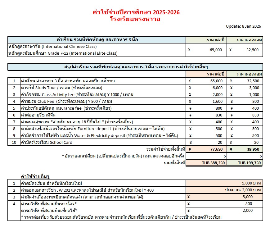 โรงเรียนหรงหวาย เปิดรับสมัครนักเรียนภาษาจีนระยะยาวเเละระยะสั้นได้ตลอดทั้งปี