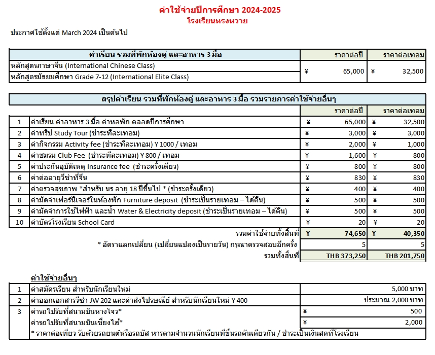 Tuition Fees: ค่าเรียนปี 2024-2025