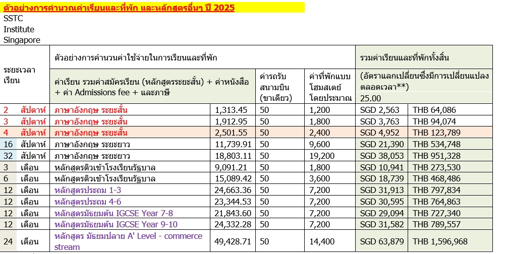 *อัตราแลกเปลี่ยนแต่ละวันไม่เท่ากันกรุณาคำนวณค่าเรียนจากเงินสกุลต่างประเทศเป็นหลัก*